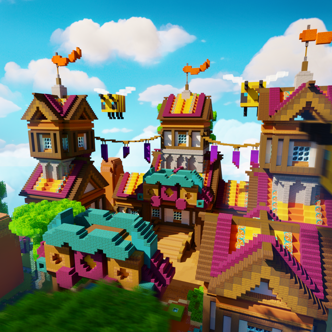 Medieval Honey Themed Lobby for your Minecraft Server. Featuring NPC Spots and a lot of decoration, and for sure, some bees!