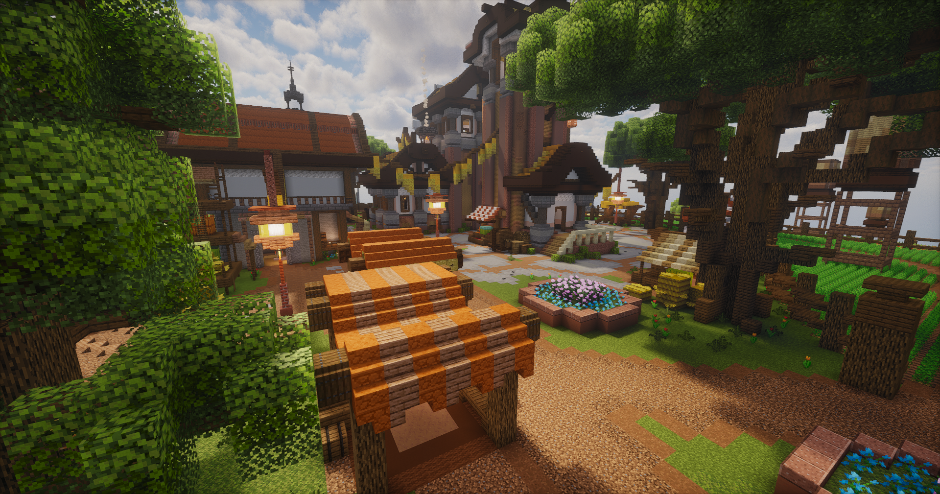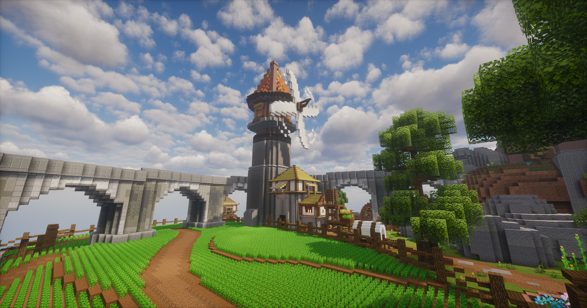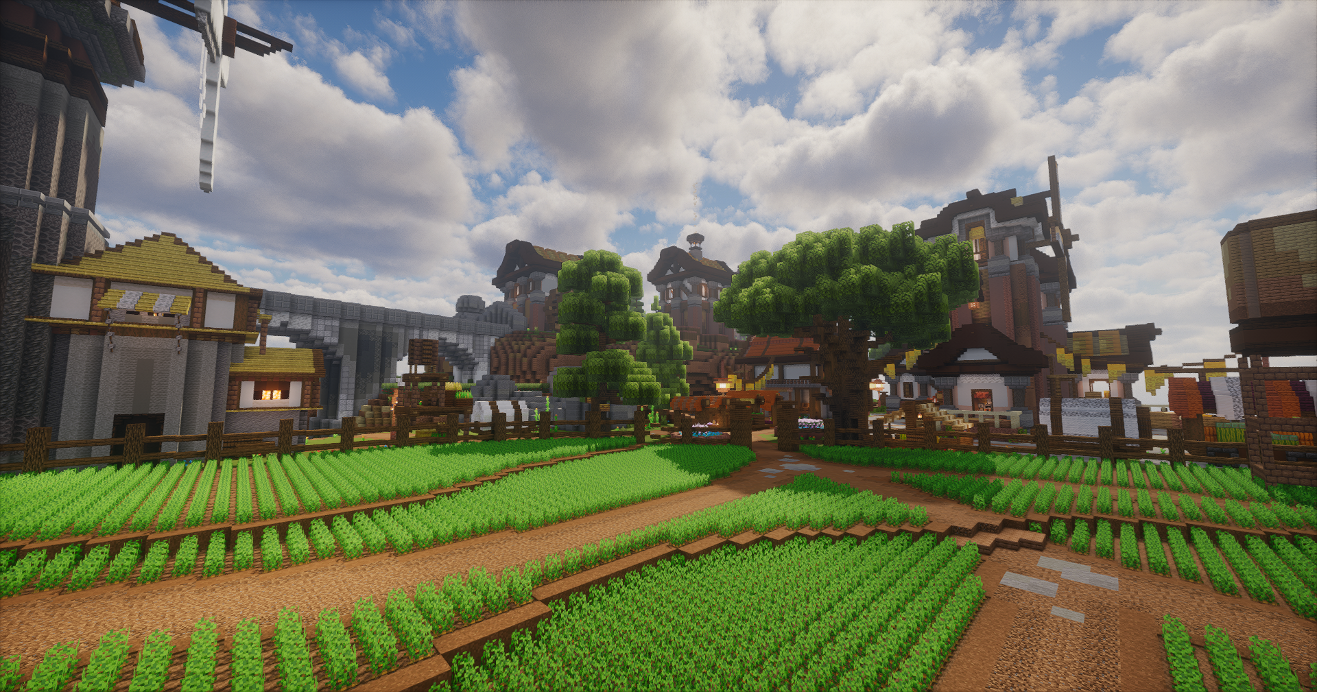 This build features a vibrant and highly detailed farming themed environment, combining lush fields, flowing rivers, elevated terrain, and cozy structures with golden roofs. The landscape blends multiple crop areas, animal zones, and natural elements into a harmonious village-like setting, creating a warm and alive atmosphere ideal for survival, RPG, or skyblock gameplay. Every corner is carefully crafted to feel immersive, functional, and visually stunning.